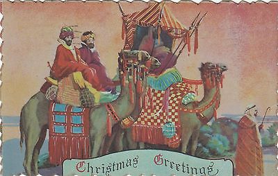 Christmas Greetings Camels Shepherds Vintage Postcard 1930