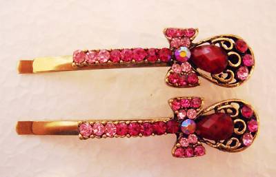 Title (ebay affiliate link): ANTIQUE STYLE ROSE RED SWAROVSKI CRYSTAL BOW HAIR CLIPS