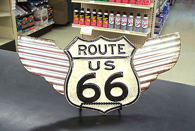 Title (ebay affiliate link): Route 66 Flying Wings Vintage Looking Embossed 3D Metal Sign Mother Road T Bird