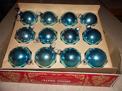 ONE DOZEN ViNTaGE SHINY BRITE CHRISTMAS ORNAMENTS - BLUE