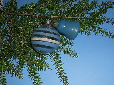 Unsilvered Vintage WWII Era Blue Bell & Striped Christmas Ornaments