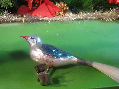 beautiful Bird on Clip with Spun Glass tail - vintage GERMAN Christmas Ornament
