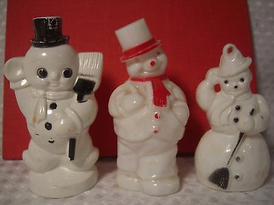 3 VINTAGE CHRISTMAS SNOWMAN 3 1/2" CANDY CONTAINER DECORATIONS