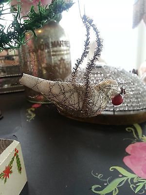 AUTHENTIC ANTIQUE EUROPEAN GERMAN? BIRD WITH BERRY, CHIPPY TAIL,WIRES,TINSEL