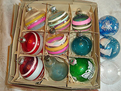 Lot of 12 Vtg WW 2 Unsilvered Christmas Ornaments 6 Pink Stripes, Bell, Stencil