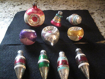 Vintage VTG Lot 10 Christmas Ornaments Shiny Brite Icicle Mercury Glass Indented