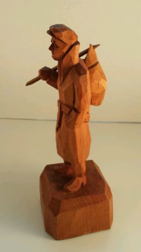 Title (ebay affiliate link): Hand carved wood man w knapsack, hobo, trench coat, 1976 signed V Firtin