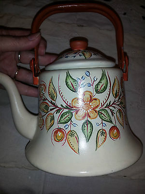 vintage tole painted tea kettle
