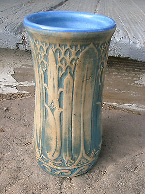 Monmouth Pottery 370 Blue Lotus Vase Arts & Crafts Western Stoneware IL Deco 8"
