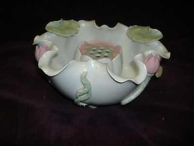 MOST EXQUISITE EARLY PORCELAIN LOTUS BOWL W/ORIG FROG - SOOO BEAUTIFUL!!!