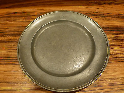 Outstanding Antique Pewter Charger 9"- numerous marks, monogrammed