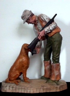 1989 Signed Carved Wooden Hunter with Dog - Estate Find!