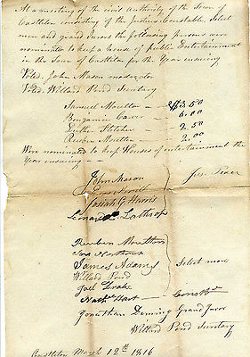 Title (ebay affiliate link): CASTLETON VERMONT DOCUMENT NOMINATING FOUR TAVERN KEEPERS FOR THE TOWN FOR 1816