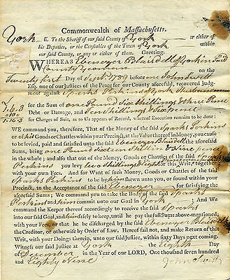 1789 YORK MAINE COURT ORDER TO SHERIFF TO COLLECT DEBT OR IMPRISON DEBTOR
