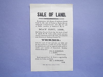 Title (ebay affiliate link): Antique Flyer 1888 Sale Of Land Oronoco Amherst County Virginia Paper VTG USA NR