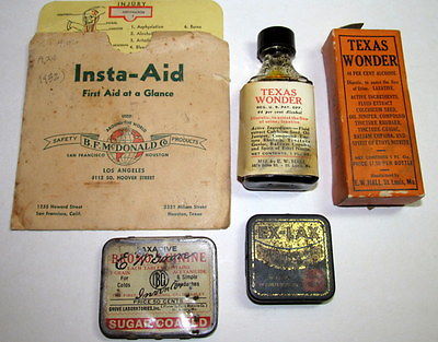 Title (ebay affiliate link): Vintage Lot Medicine Items Texas Wonder Bottle Label Box Ex-Lax Tin Insta-Aid