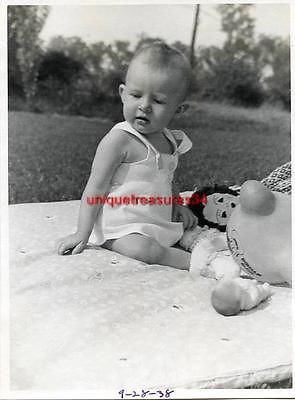 #L647 Vintage 1930's Photograph - Toddler on Blanket - Raggedy Ann Doll