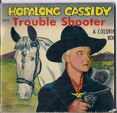 Title (ebay affiliate link): Hopalong Cassidy Coloring Book -1950 - Trouble Shooter / Starring William Boyd