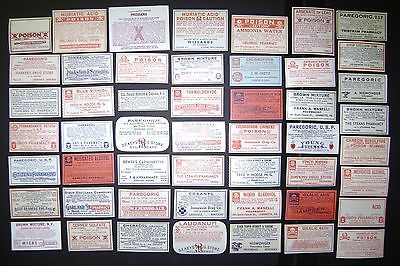 50=OLD POISON & NARCODIC PHARMACY APOTHECARY MEDICINE BOTTLE LABELS=EPHEMERA