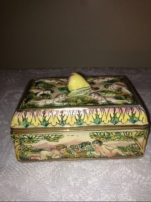 Title (ebay affiliate link): Vtg Capodimonte Majolica Hand Painted, Putti Cherub Reticulated Trinket Box