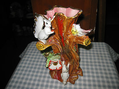 Vintage Mid Century Vase G Girardi Italy Capodimonte Floral Tree Trunk Squirrels