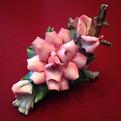 Capodimonte Porcelain Flower - Pink Rose with buds
