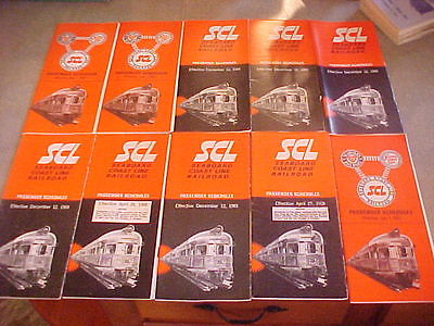 Lot of 10 1960's SCL Seaboard Coast Line Railroad Public Timetables