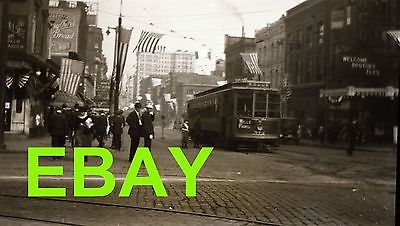 Vintage Photo Negative Streetcar Trolley Milwaukee Wisconsin Street Scene