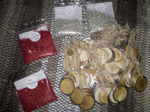 Title (ebay affiliate link): PrImItIvE CrAfT LoT- GrUnGy HaNgTaGs, GeRmAn GlAsS GlItTeR RoSe ReD & SiLvEr