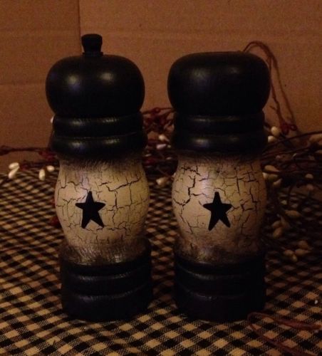 Title (ebay affiliate link): Primitive Wood Salt Shaker And Pepper Mill Crackle Country Farmhouse Decor
