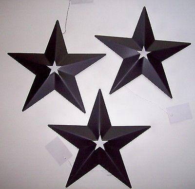 Title (ebay affiliate link): SET of 3 BLACK BARN STARS -6" CUT OUT WALL DECOR PRIMITIVE COUNTRY HANGERS