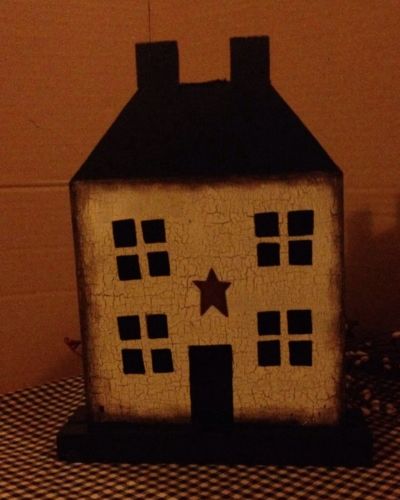 Title (ebay affiliate link): Primitive Wood Saltbox House Shelf Sitter Crackle Country Farmhouse Decor