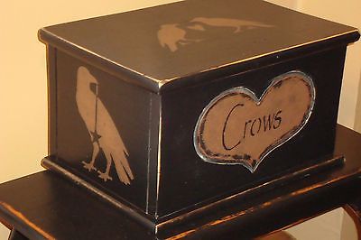 wood bread box trunk chest bin storage black primitive crows hearts star