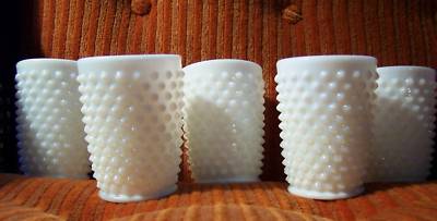 MILK GLASS VINTAGE 5 JUICE GLASSES - HOBNAIL