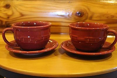 LONGABERGER POTTERY PAPRIKA CAPPUCCINO MUGS / CUPS AND SAUCERS SET OF 2
