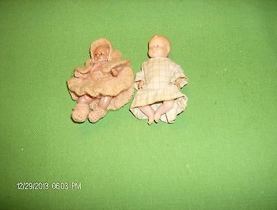 VINTAGE ONE 4 INCH DRESSED CELLULOID DOLL AND ONE 4 INCH HARD PLASTIC DOLL