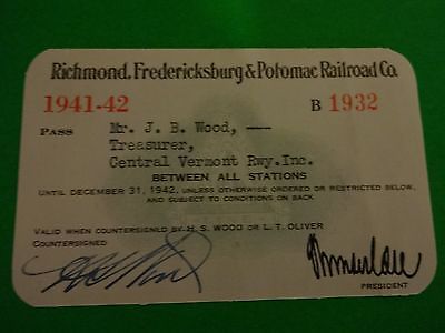 Title (ebay affiliate link): 1941-42 RICHMOND, FREDERICKSBURG & POTOMAC R.R. CO. PASS