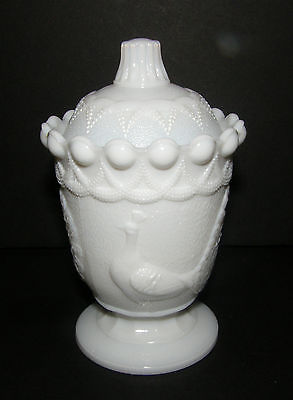 Westmoreland Milk Glass Strutting Peacock Sugar Bowl Lidded Jar