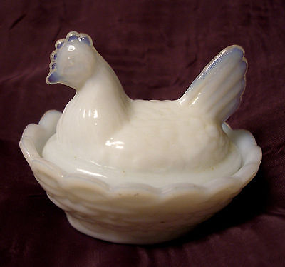 Title (ebay affiliate link): Vintage Westmoreland Milk Glass 2.5" Miniature Chick Hen on Nest Salt Dip Cellar