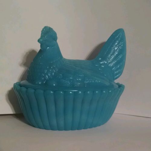 Title (ebay affiliate link): Westmoreland Glass Blue Hen, Hen on Nest Blue Milk Glass, Chicken on Nest Dish