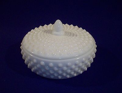 Title (ebay affiliate link): Vintage FENTON White Milk Glass Hobnail 6" Candy Dish Bowl w/ Lid
