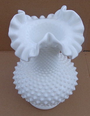 Title (ebay affiliate link): Large Vintage Fenton Milk Glass Hobnail 10 1/2" Vase Ruffle Crimp Rim
