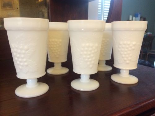 Title (ebay affiliate link): Vintage~Set of 5~Milk Glass~Grape Leaf Harvest~Footed~Goblet~5.5" Tall