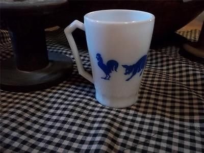 Vintage Hazel Atlas child cup white glass blue duck animals milk glass child cup