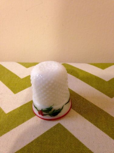 Vintage WESTMORELAND HANDPAINTED MILK GLASS Holly Thimble