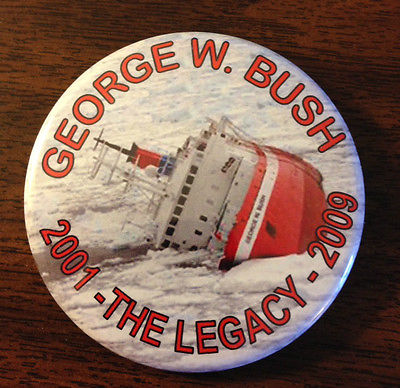 Title (ebay affiliate link): Anti-GW Bush 2001-2009 Legacy "Sinking Ship" Pinback Button