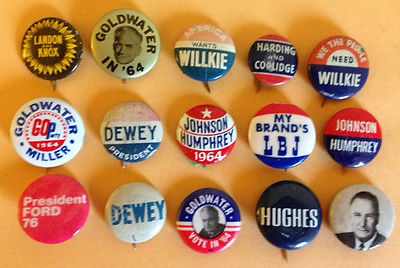 Title (ebay affiliate link): Neat Lot of 15 Smaller Various Presidential Campaign Pinback Buttons