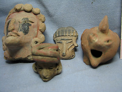 Lot of 4 Pre Columbian Mexican Artifact Figures Fetish Fragment Heads