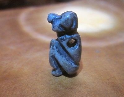 Title (ebay affiliate link): Attractive Pre Columbian Jade Bead Amulet "Skywatcher" West Mexico, 500BC-1000AD