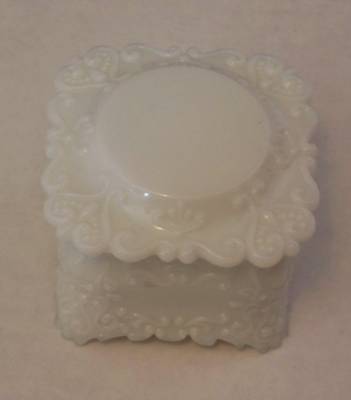 Vintage MILK GLASS Box-2 3/4" X 3 1/2" With Lid-ORNATE